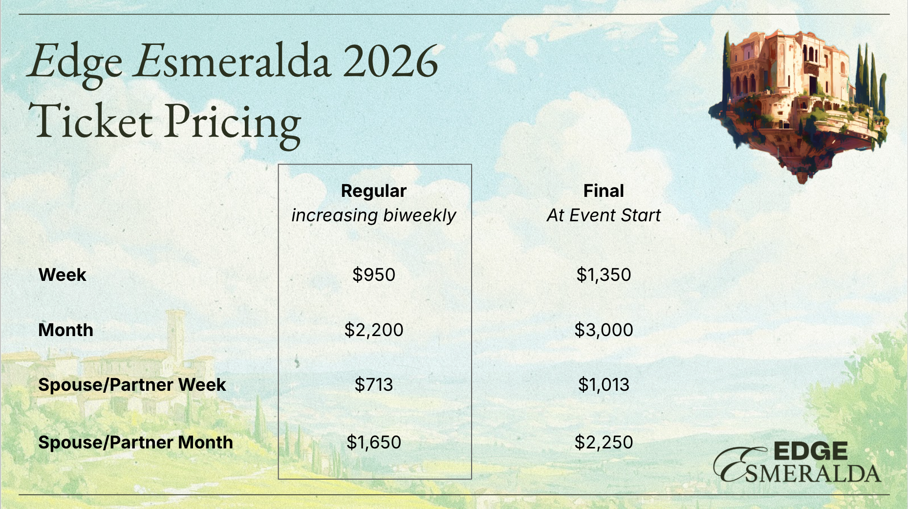 - Discounted tickets for Edge Esmeralda 2026: Prices increase every two weeks. Grab yours now at a reduced rate →