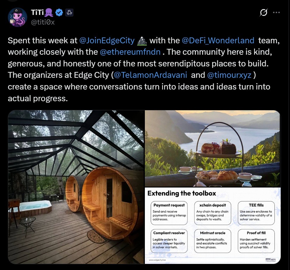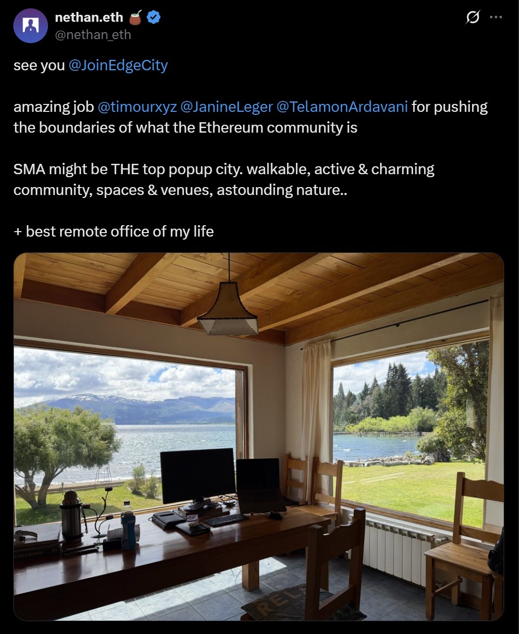 “Edge City is such a fascinating experiment in community building. The spontaneous connections that happen there are exactly what our ecosystem needs.” - Noelle Iqbal