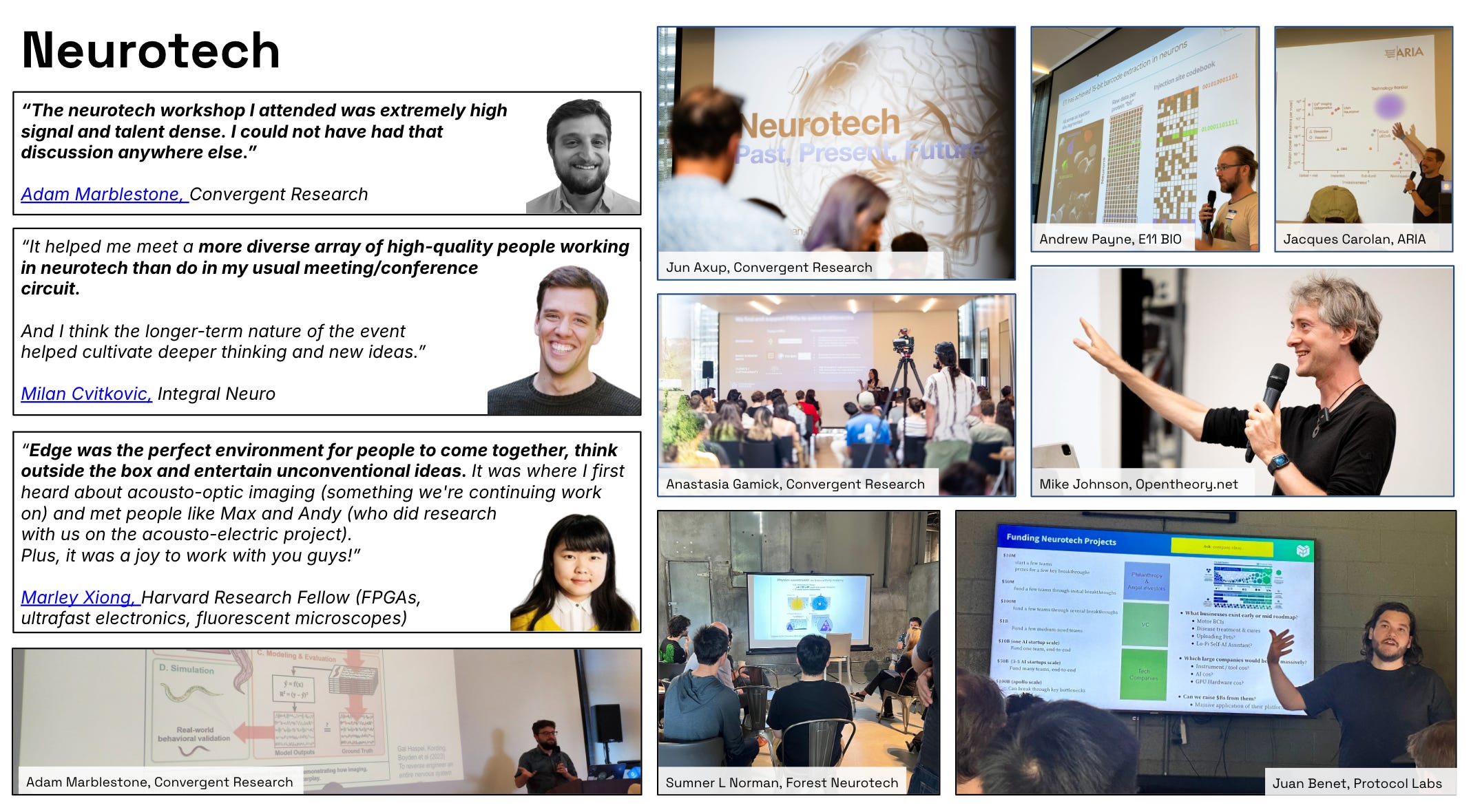 Lab Week with Protocol Labs, Foresight Institute, & Convergent Research has helped advance Neurotech, Human-AI Cooperation, Biotech & Longevity, and Extended Reality. These intensive collaborations explore frontiers from brain-computer interfaces to human-machine cooperation, while supporting emerging fields like DeSci and robotics.