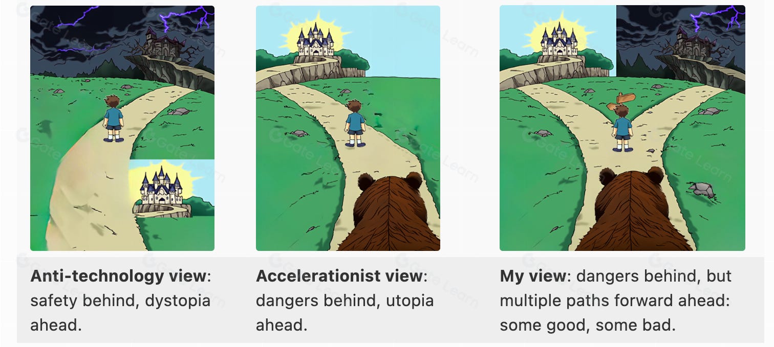 However, this acceleration brings both opportunity and risk. While technologies like artificial general intelligence could dramatically enhance human potential, they could also lead to dystopian outcomes if not carefully managed. The d/acc (decentralized/defensive acceleration) model proposed by Vitalik Buterin offers an interesting approach for navigating this challenge - suggesting that rather than slowing down, we should thoughtfully accelerate the development of beneficial technologies while building in decentralized safeguards. This approach to technological advancement might help us better balance innovation with safety.