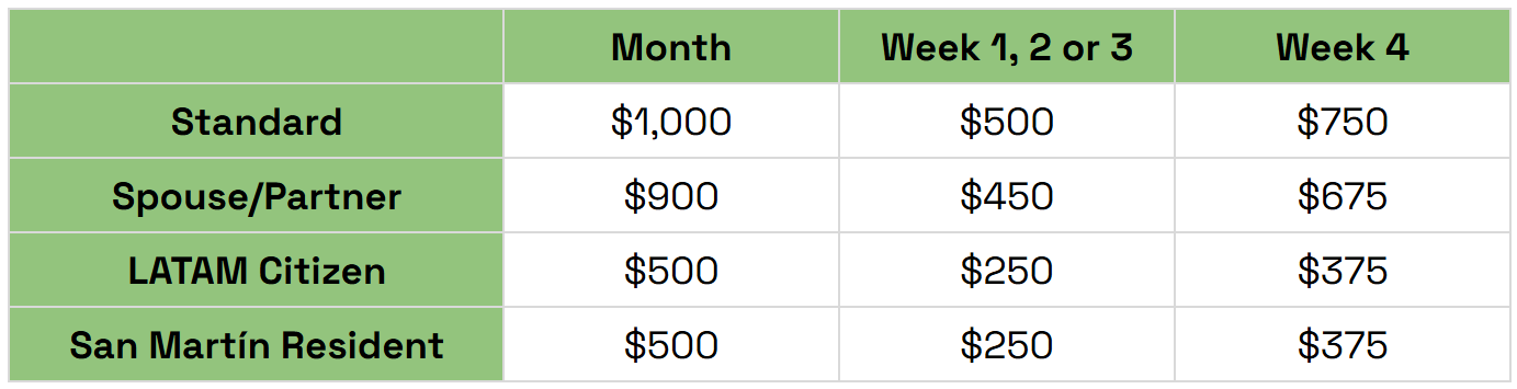 Housing & food in San Martín is affordable, especially during shoulder season when we'll be there.